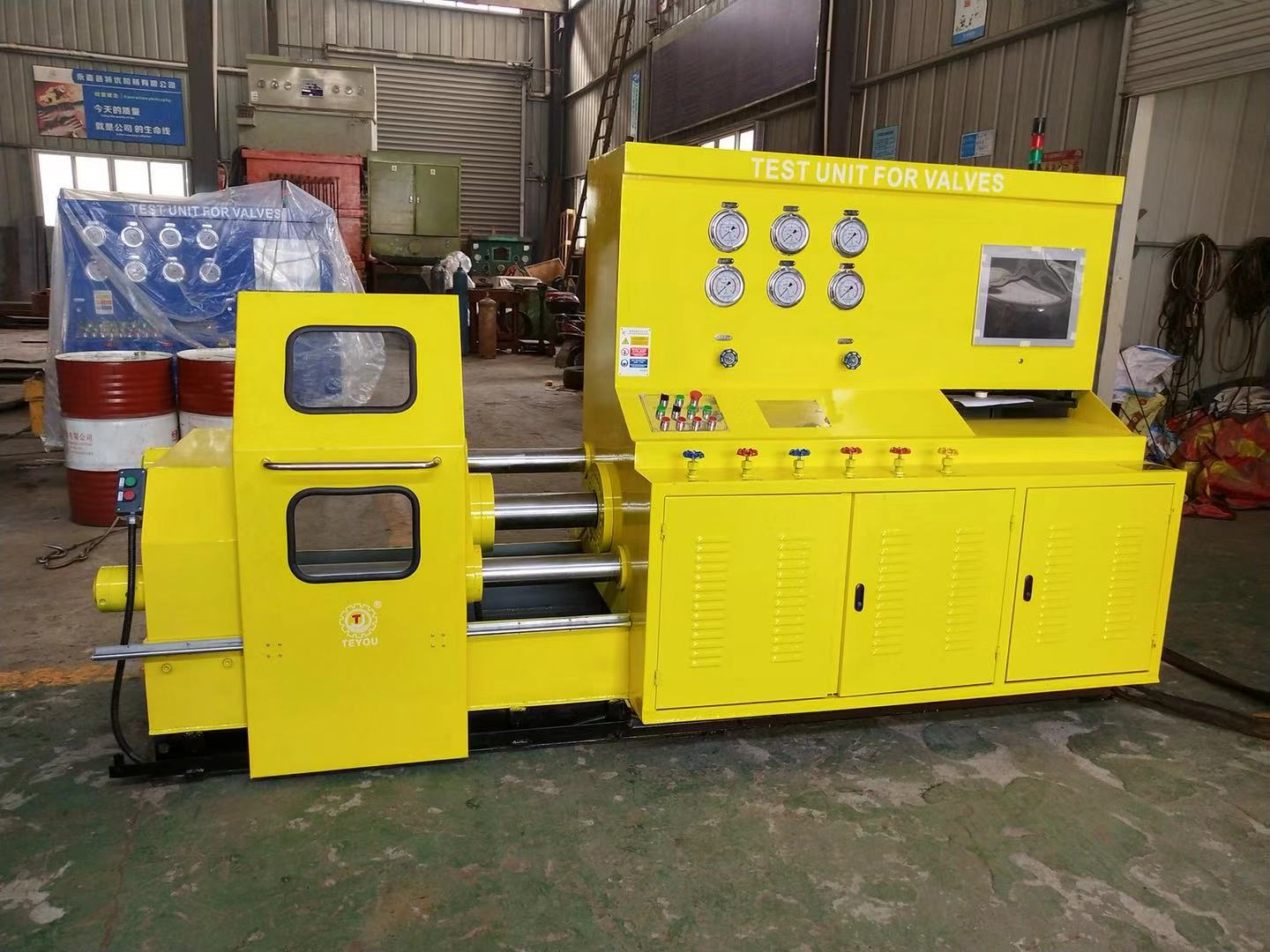 由于項目涉及重要工況閥門試壓檢驗和二次檢測,項目組委會 邀請國內(nèi)優(yōu)良業(yè)績和資質(zhì)合格供應(yīng)商(生產(chǎn)廠家),標(biāo)委會成員技術(shù)部、設(shè)備部、采購部經(jīng)過廠家資質(zhì)能力篩選和技術(shù)論證,最終選用有中石油系統(tǒng)合作供應(yīng)業(yè)績的制造商浙江優(yōu)機機械科技有限公司的新型改進型頂壓式JWT型閥門試驗臺,檢測范圍涉及法蘭、焊接、絲扣等連接閥門,口徑范圍2”-24”,壓力范圍2.5-63.0Mpa此次中標(biāo)產(chǎn)品已通過浙江省工業(yè)新產(chǎn)品鑒定,也是發(fā)明專利產(chǎn)品,專利號:ZL 2016 1 0240324.1 主要針對高要求檢測單位。主要檢驗球閥、截止閥、止回閥、閘閥等。是目前國內(nèi)技術(shù)領(lǐng)先的閥門試驗設(shè)備,該產(chǎn)品先后中標(biāo)中石油大慶油田工程有限公司、中石油四川油建工程公司、中石油冀東油田工程公司等,產(chǎn)品憑借高精度、智能、節(jié)能、操作方便等特點,成為第三方檢測、施工安裝單位、閥門生產(chǎn)企業(yè)首選產(chǎn)品。