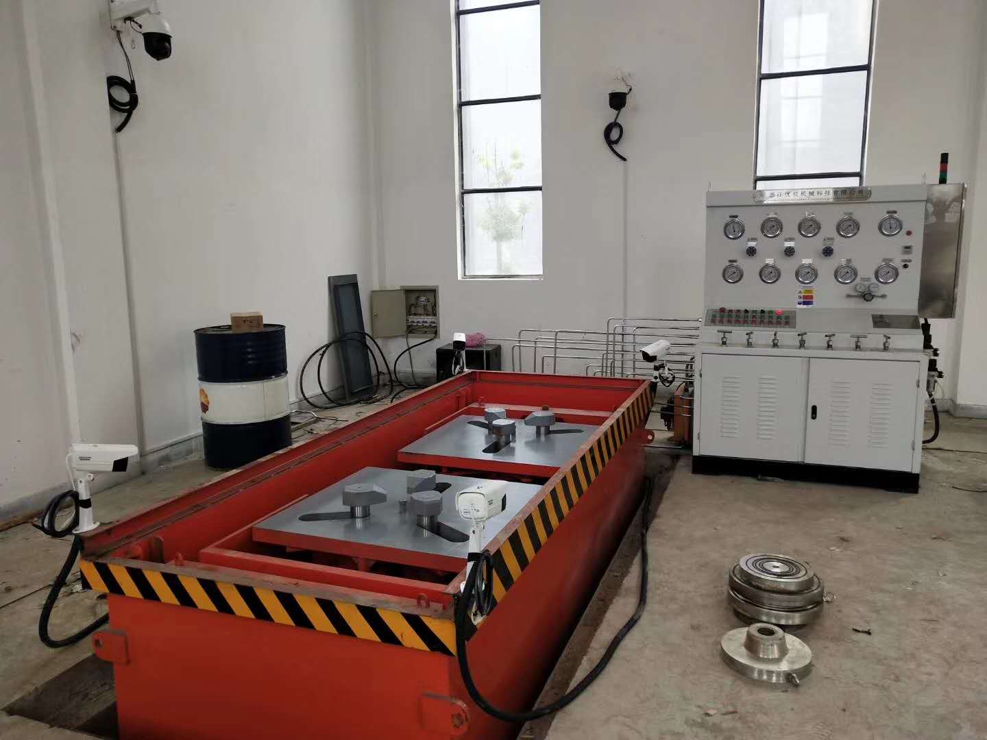因該項目涉及國防軍工用閥門產品,產品技術細節和用途工況經過雙方商定給與保密,項目主要涉及高壓氣體閥門壓力試驗和壽命測試,浙江優機作為該企業優質合作供應商和該國防軍工企業有多年和項目合作業績,此次項目主要設計氣體高壓和保壓壽命試驗,主要有智能監控系統、人機分離保護和遠距離高清監控、液壓夾緊工作臺、沉水水箱、氣體增壓系統等。本次所供產品技術含發明專利技術2項產品,專利號:ZL 2016 10240324.1和ZL 2016 1 0260566.7,主要針對高壓氣體工況閥門試驗測試。