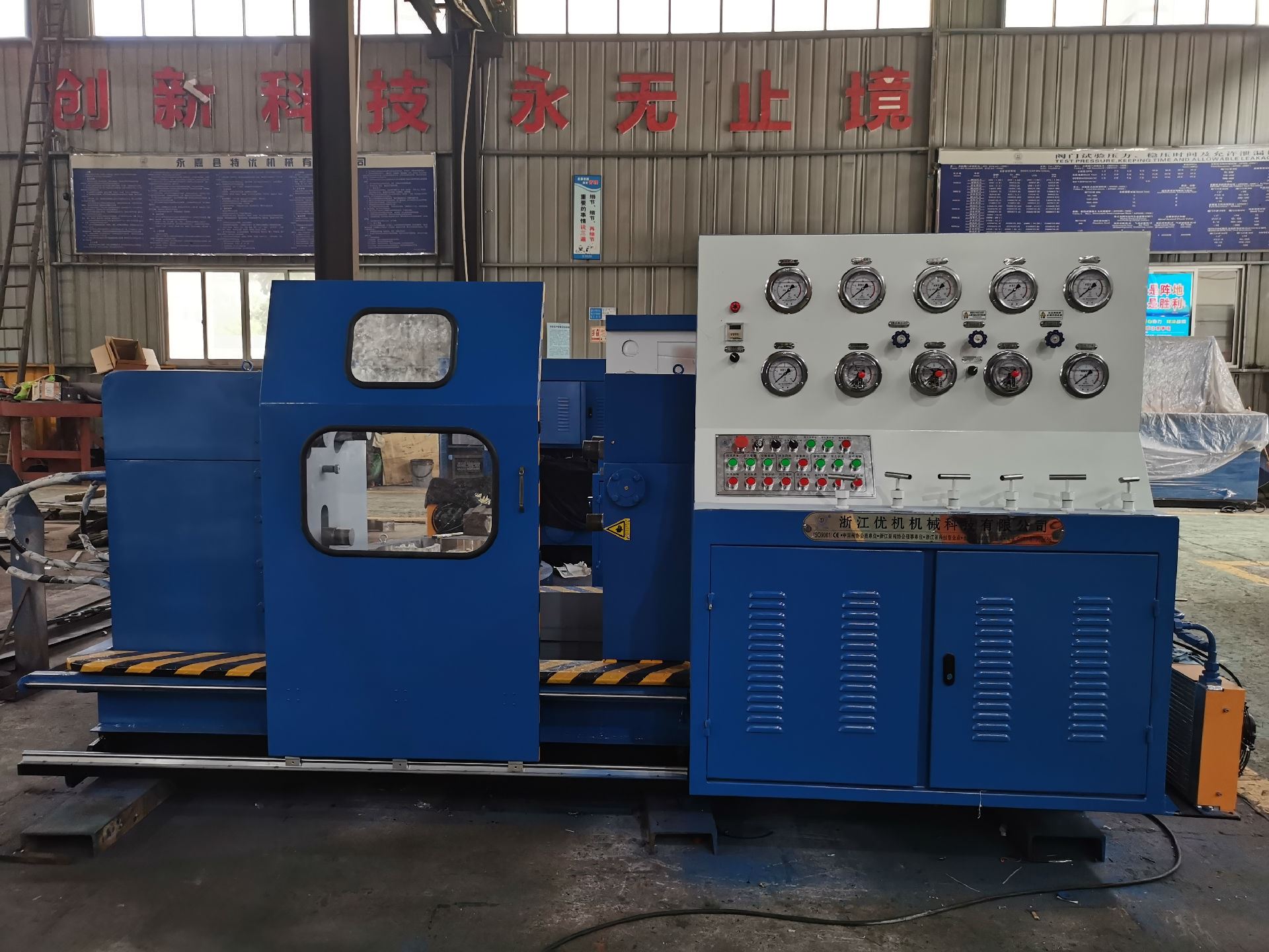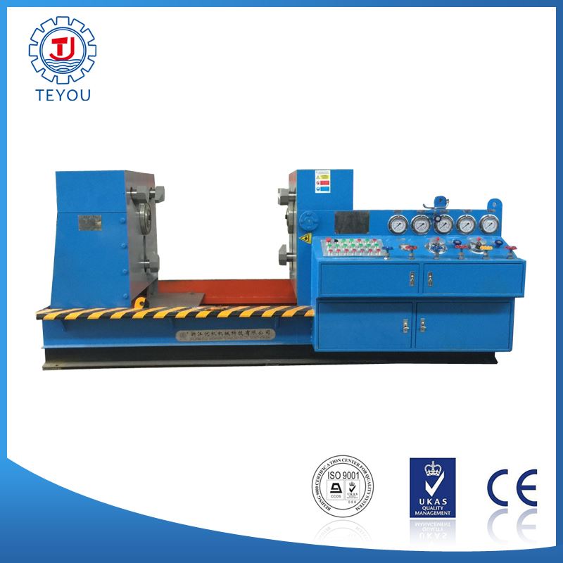 本機(jī)集機(jī)電、液壓、試壓、液體介質(zhì)貯存循環(huán)使用于一體,具有功能完善、性能穩(wěn)定、自動(dòng)化程度高等特點(diǎn)。廣泛用于公稱(chēng)通徑DNl 5-1000mm的直通式法蘭及螺紋連接各類(lèi)高、中、低壓閥門(mén)的強(qiáng)度、密封和泄漏量等各項(xiàng)性能測(cè)試。測(cè)試介質(zhì):水、氣、油。最高密封試驗(yàn)壓力 32.0MPa,強(qiáng)度48 0MPa。